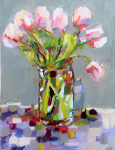 tulips display in glass vase