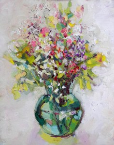 green glass and wild flowers oil GillCox